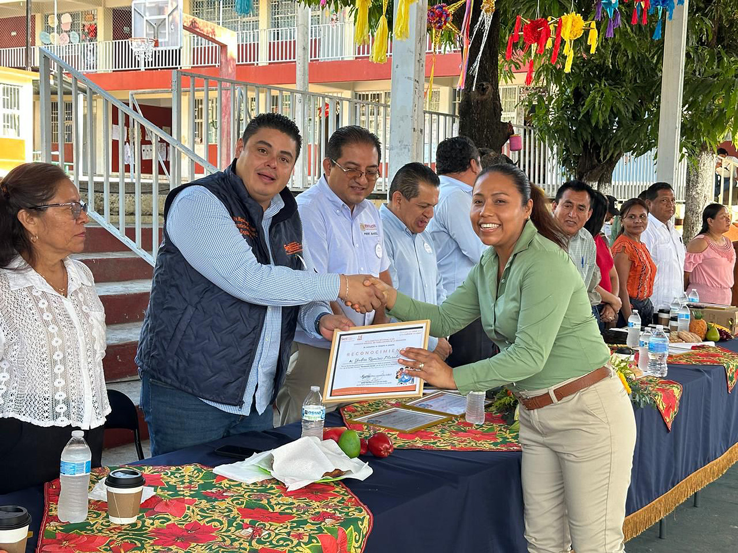 En representación del Secretario General de la Sección 14 del SNTE, Mtro. Silvano Palacios Salgado, una comisión de la Directiva Sindical entregó el reconocimiento a la comunidad escolar que presentó el proyecto “Primavera, lectura, canto y paz en nuestra escuela”, coordinado por el Prof. Alfonso Olimpo Calixto García.