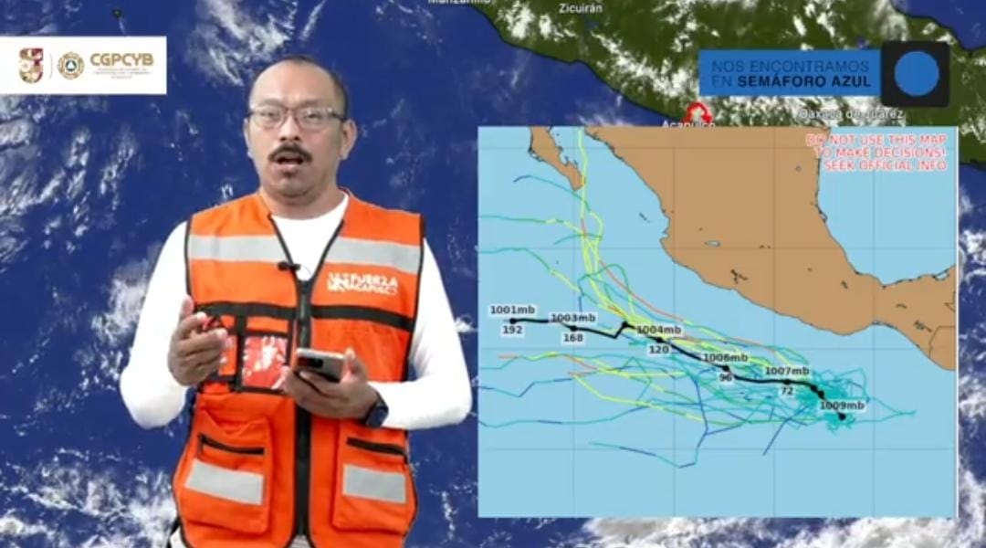 Durante una transmisión en vivo, el encargado del Centro de Monitoreo de la CGPCyB, Juan Ramón Ramírez Miranda, informó que el municipio se encuentra en fase azul de alertamiento debido a los posibles efectos de dicho sistema.